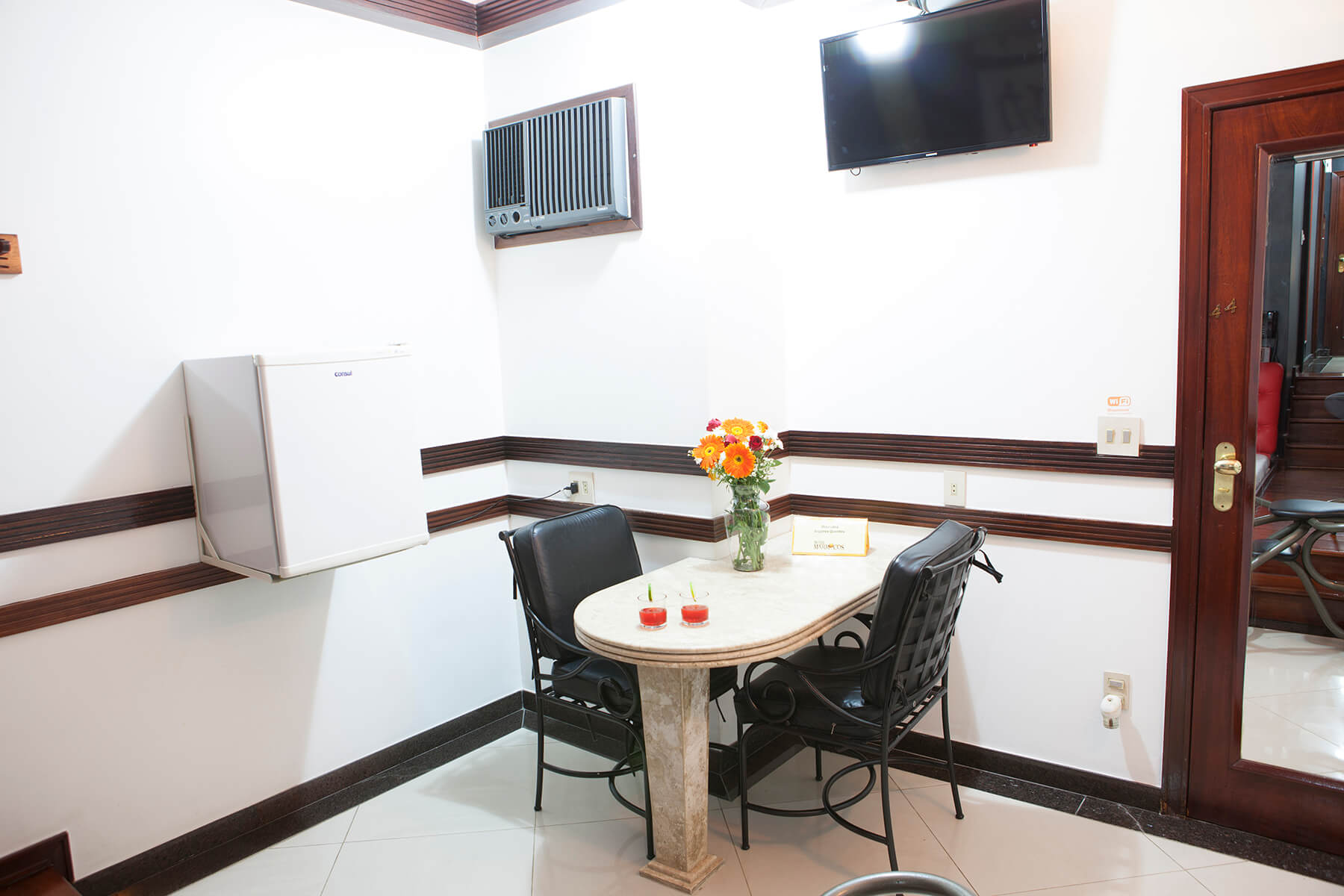 Elegância e conforto em cada detalhe. A Suítes Super Luxo oferece uma experiência completa de luxo e privacidade, perfeita para momentos especiais com todo o requinte que você merece. Decoração sofisticada, com iluminação ambiente e todos os mimos para tornar sua estadia inesquecível.